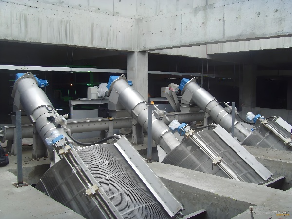 整套转鼓式格栅由:旋转网筒、网筒拖轮、前后加强圈及拦渣板、输送压榨机、支架、驱动装置、冲洗装置等组成。